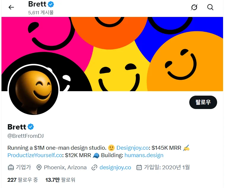 혼자서 연 매출 20억 원을 번 디자이너가 있습니다. 게다가 하루 4~6시간만 일하면서 말이죠. 바로 브렛 윌리엄스(Brett Williams)와 그가 만든 1인 디자인 회사 '디자인조이(DesignJoy)'입니다.